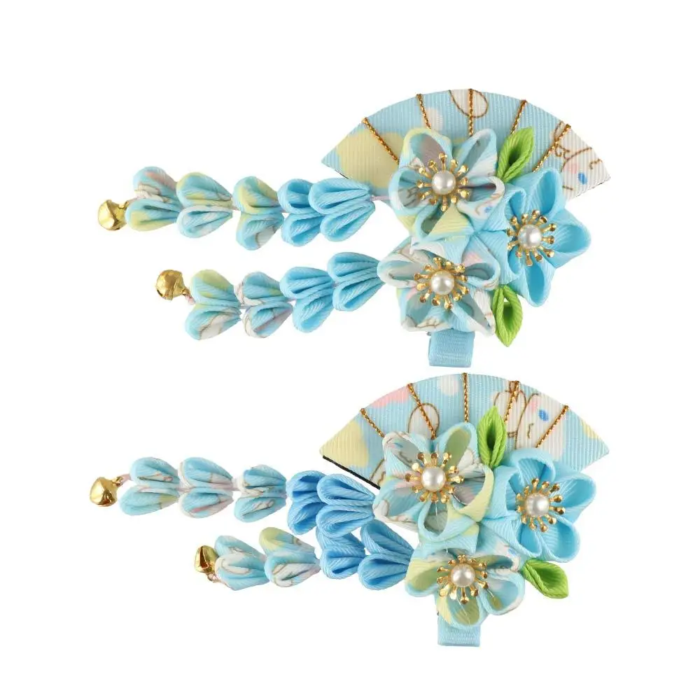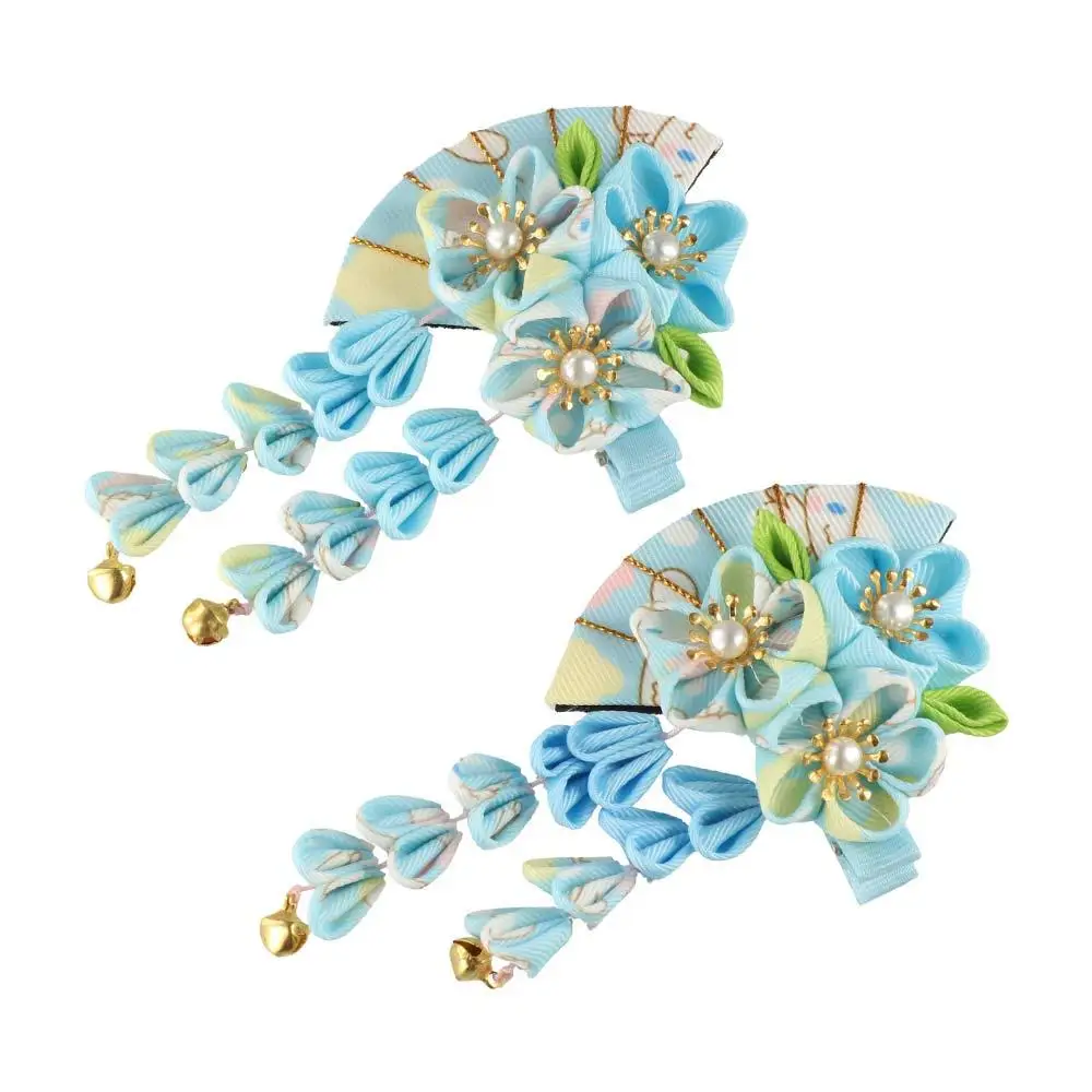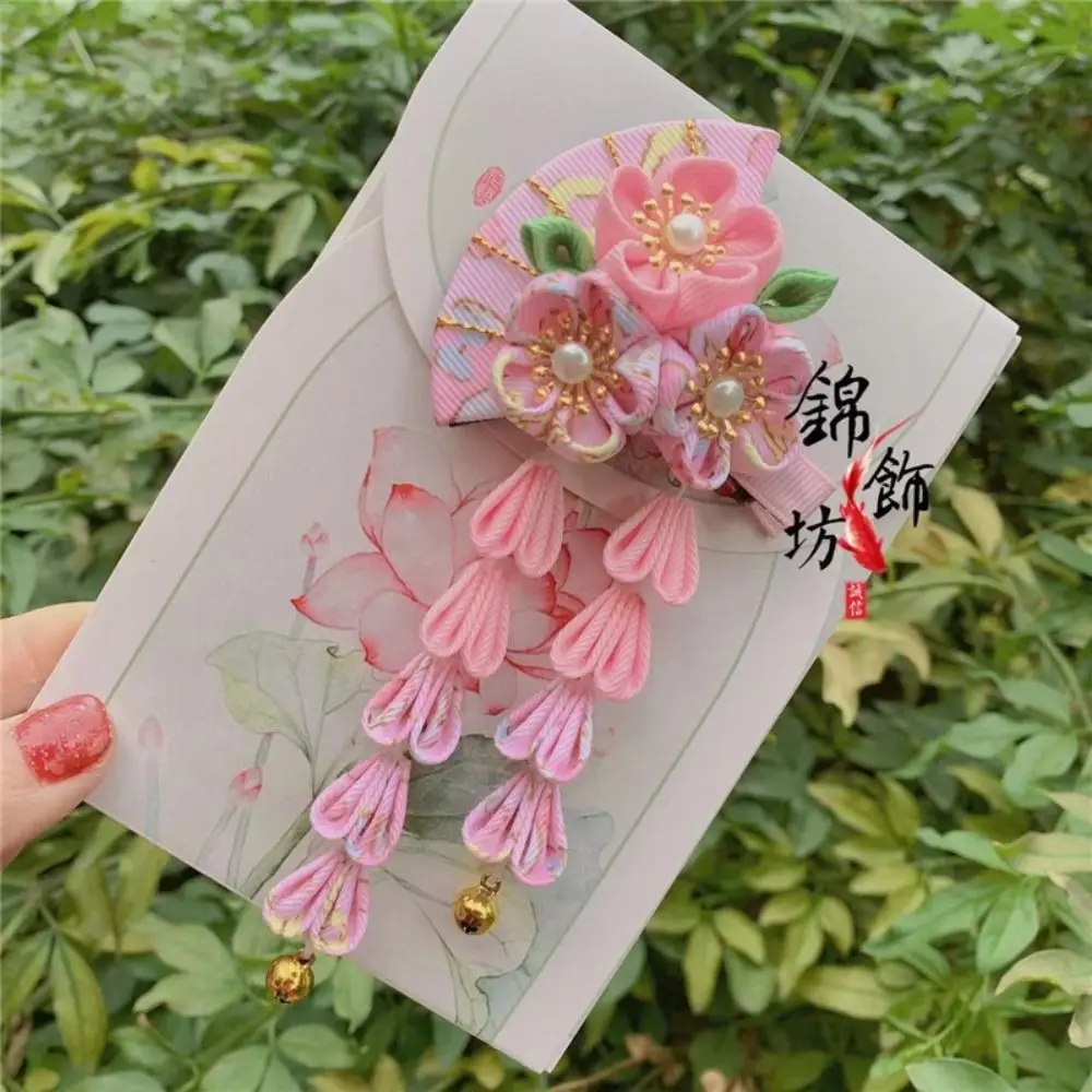 Simple Tassels Tassel Fan Hairpin Sakura Flower Japanese Kimono Headwear Hanfu Fan Hair Clip Ancient Style Hairpin Children