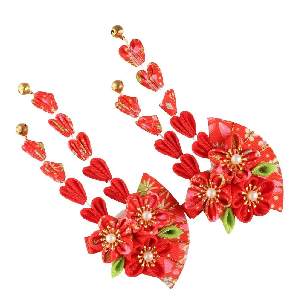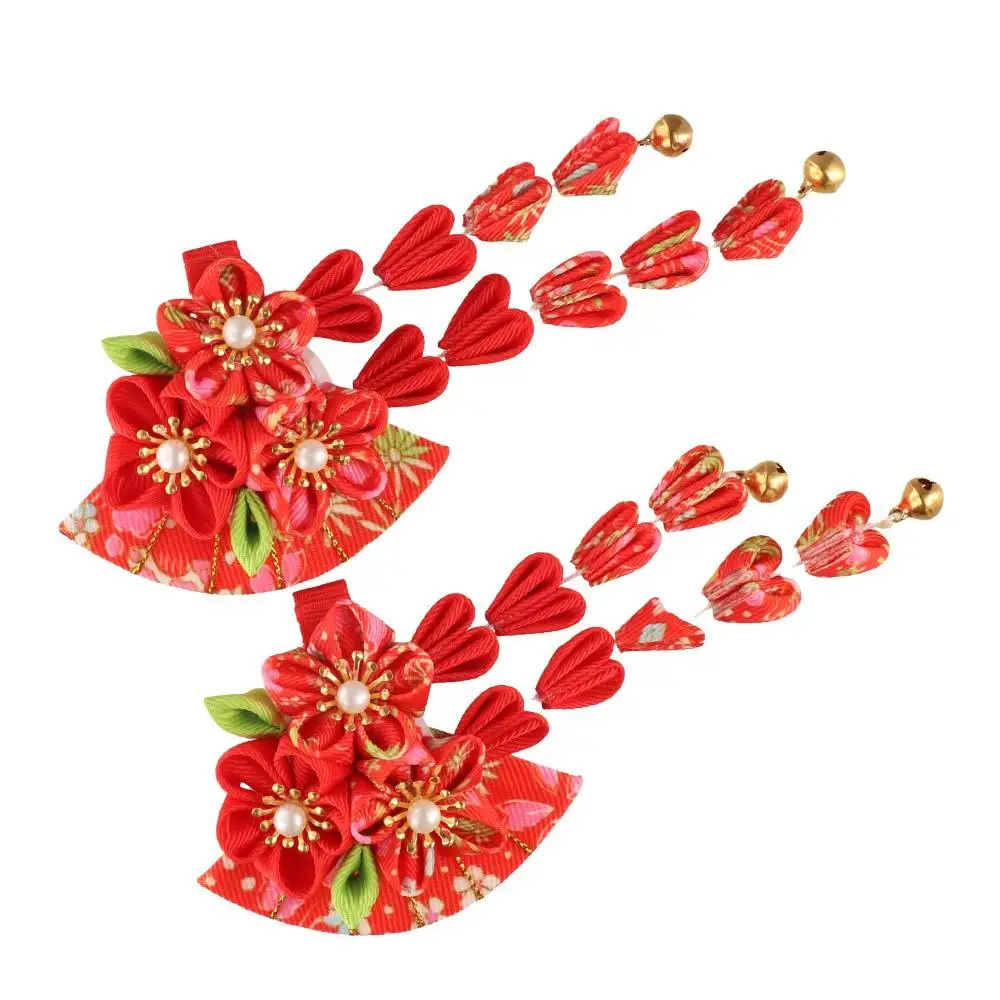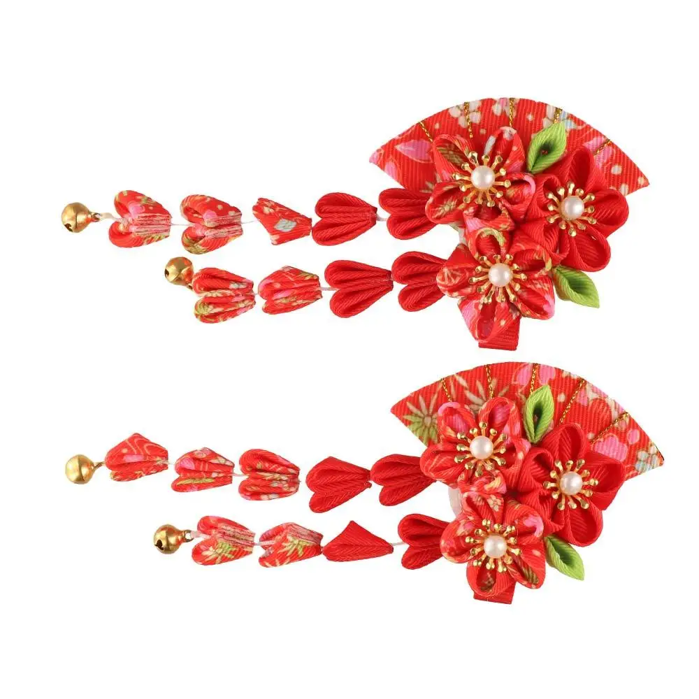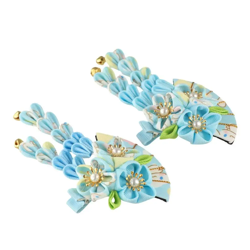 Simple Tassels Tassel Fan Hairpin Sakura Flower Japanese Kimono Headwear Hanfu Fan Hair Clip Ancient Style Hairpin Children