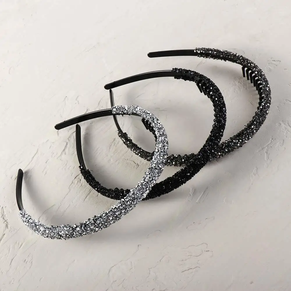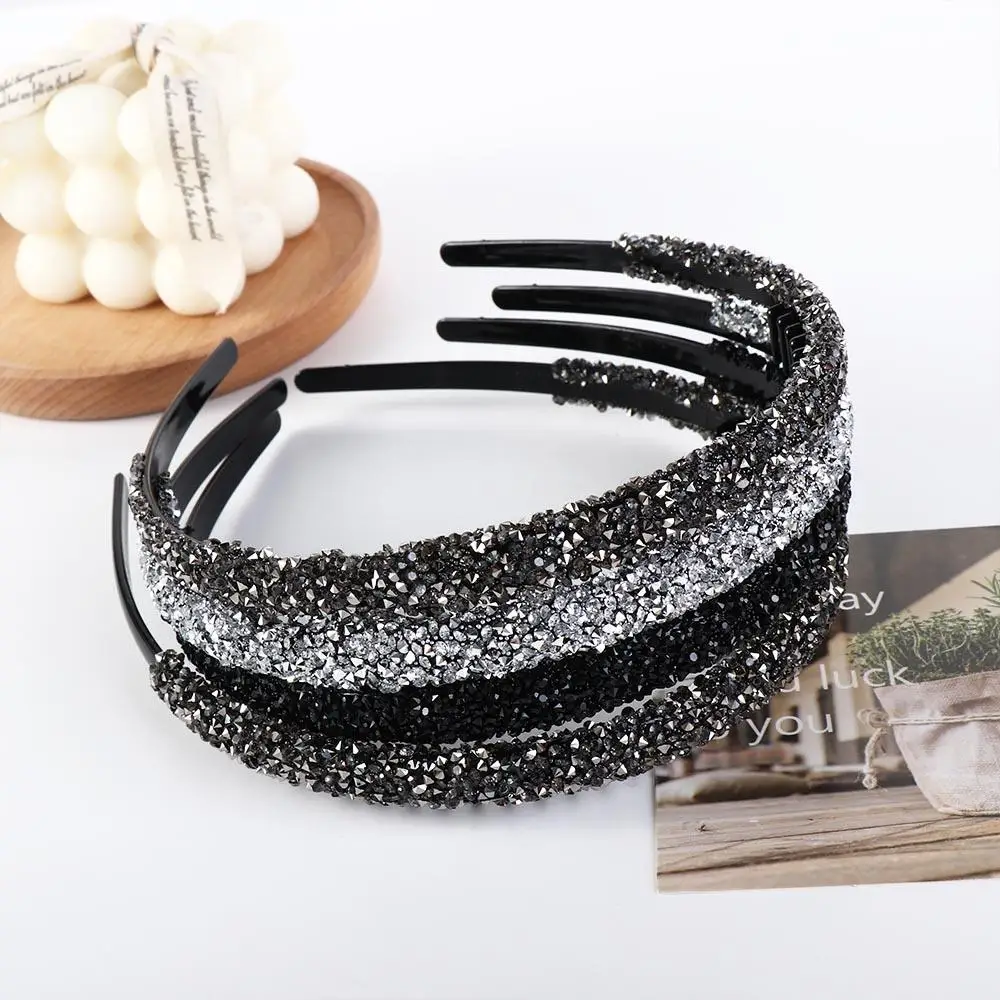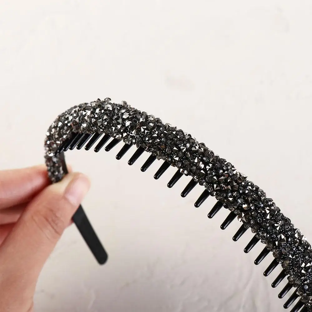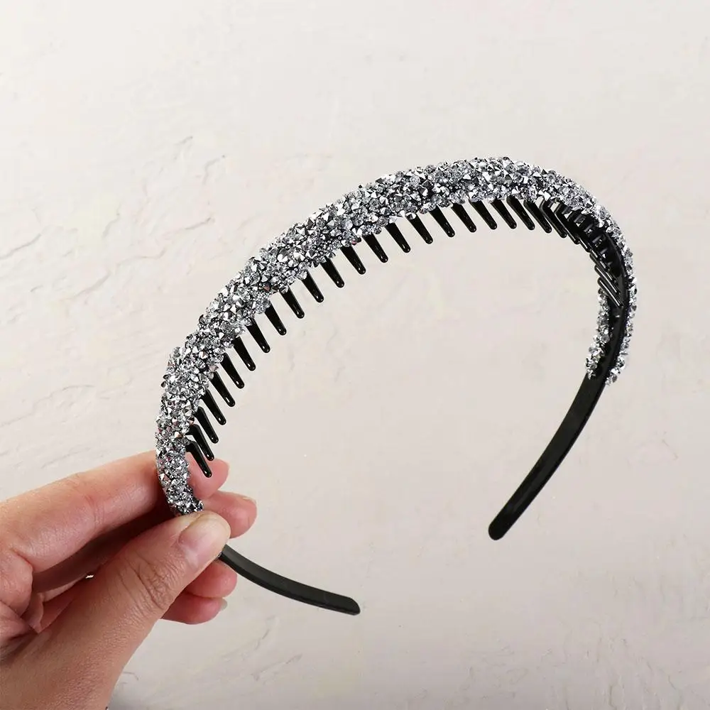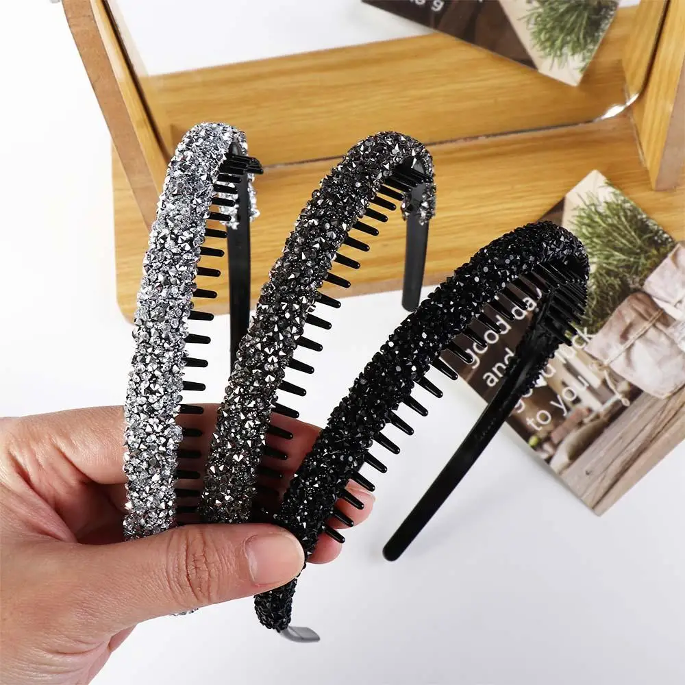 Vintage Plastic Rhinestone Headband Make Up Face Wash Hairband with Toothed Korean Style Diamond Hair Hoop Male